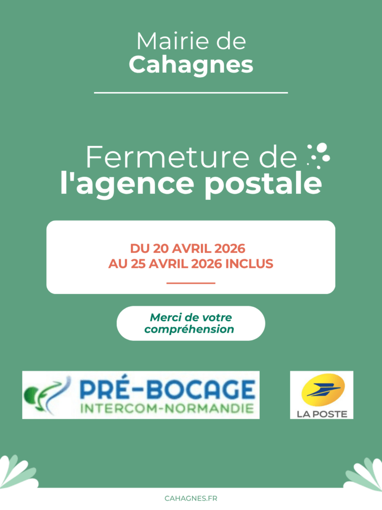 L’agence postale de Cahagnes sera fermée du 20 avril au 25 avril 2026 inclus. Vos instances et colis seront à […]
