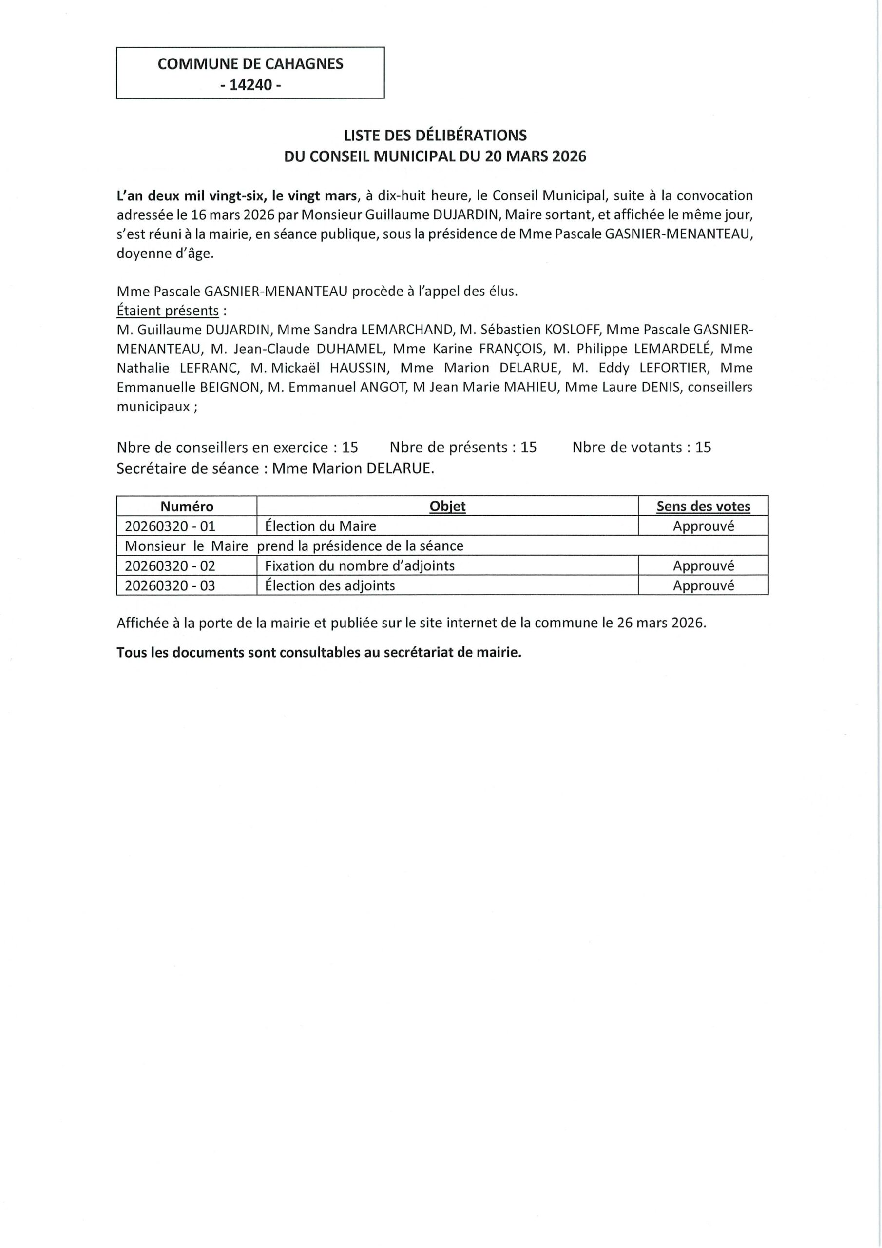 Liste des délibérations du 10 mars 2026