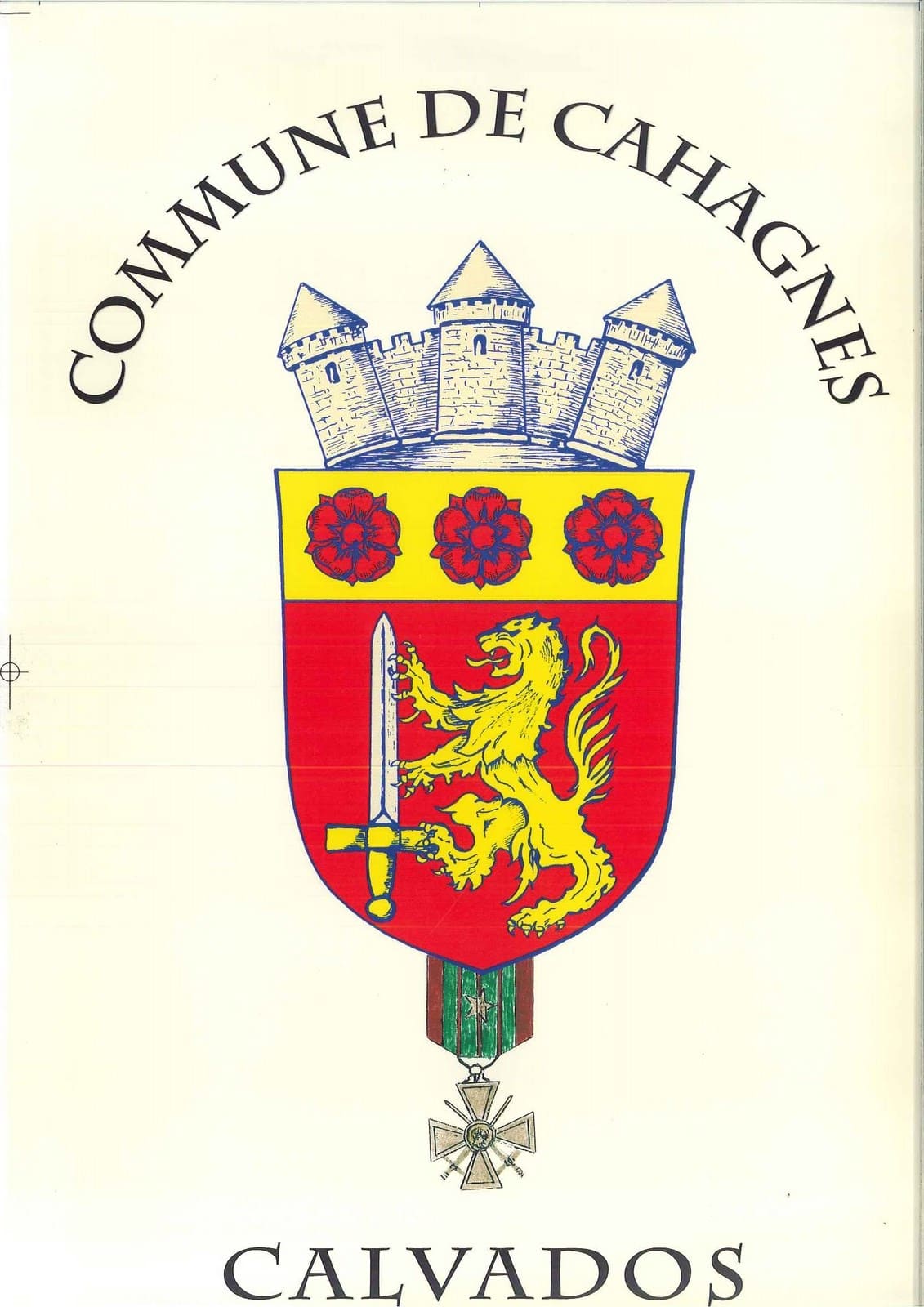 Le blason de Cahagnes est un condensé de l’identité de notre commune, mêlant passé seigneurial et mémoire militaire.